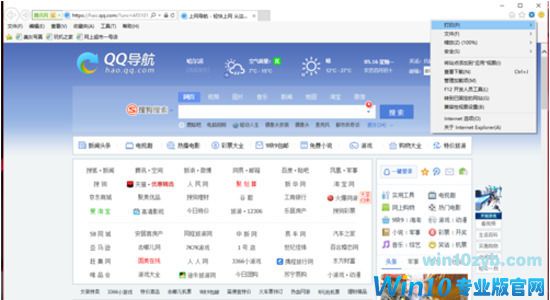1、打开win10系统自带的浏览器。点击右上角的小齿轮。选择internet选项;