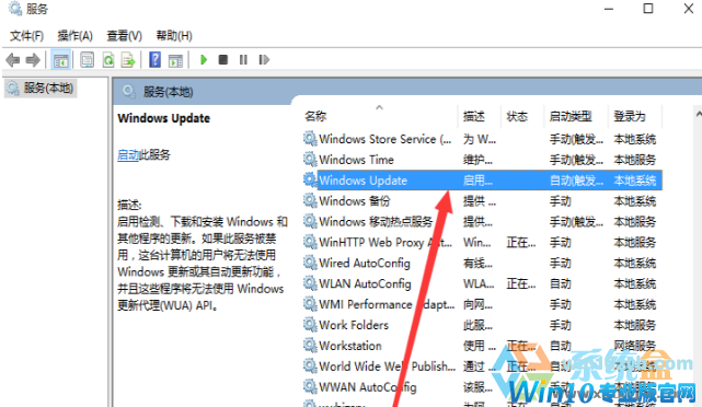 2.这时候会弹出一个服务(本地)界面框,找到“Windows Update”项目栏。