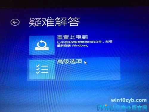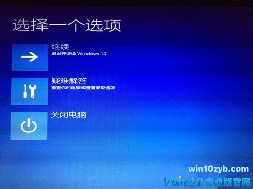 1、Win10系统启动到LOGO界面后,强制重启,反复3次左右,至到显示疑难解答,我们点击疑难解答进入;