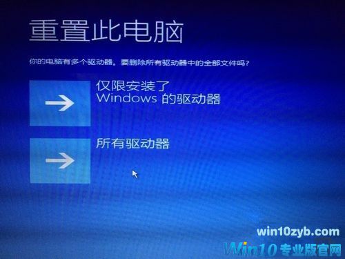 3、接下来这里,我选择的删除所有内容。这里是准备要格式化系统分区C盘,如果想保留C盘内容建议选择另外一个选项,然后自己研究一下吧。