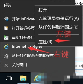 1、右键点击IE程序,打开属性(我是在任务栏里打开的)如下图所示,将最后面引号里面的网址去掉,只留下"C:\Program Files\Internet Explorer\iexplore.exe"(亦或是其他)。本以为这样就能解决,结果再打开浏览器,提示有程序要修改IE主页,看来还有程序在作怪。
