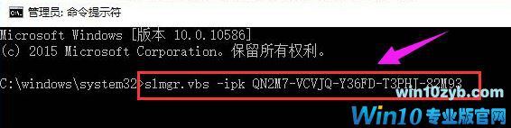 3、输入:slmgr.vbs -ipk QN2M7-VCVJQ-Y36FD-T3PHJ-82M93(将后面的25位字母改成);