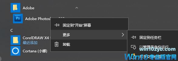 3、在弹出窗口中,右击相应的应用程序图标,从右键菜单中选择“更多”->“打开文件位置”项;