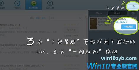 3、在下载管理界面找到下载完成的ROM,然后点击 一键刷机 按钮即可可开始刷机;
