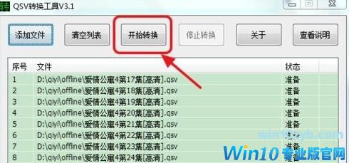 3、打开软件,点击添加文件,将qsv文件选中打开,然后点击 开始转换 按钮即可进行转换了!