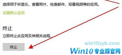 第三步、在程序窗口,将后台应用设置成“关”,再找到并点击“终止”项目下的“终止”即可,如图: