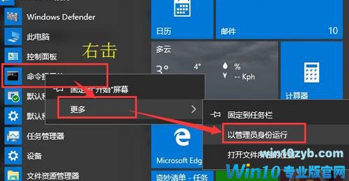 3、用“管理员身份”运行命令提示符。(开始菜单--windows系统--右击 命令提示符 --选择以管理员身份运行,或者在搜索框直接搜索CMD后右击用管理员身份运行);