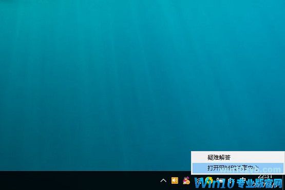 一、首先在Win10桌面右下角的网络图标中,点击鼠标右键,然后点击“打开网络和共享中心”,如下图所示。