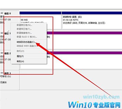 二.打开磁盘管理工具,将需要合并的硬盘转换为动态磁盘(PS:非系统磁盘)