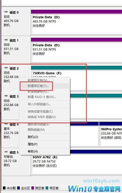 选着你要合并的硬盘,右击磁盘新建带区卷