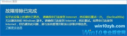 Win10系统无法激活报错“0xc0ea000a”怎么办?我们安装Win10系统之后,首先要做的就是激活Windows系统,因为只有激活之后电脑才能正常使用。不过,最近一位用户在激活Win10系统时失败了,系统提示:“似乎此设备上的硬件已更改。请确保你已连接到 internet,然后稍候重试一次。(0xc0ea000a )无法激活你的windows 副本。”,遇到这种错误提示该如何解决呢?
