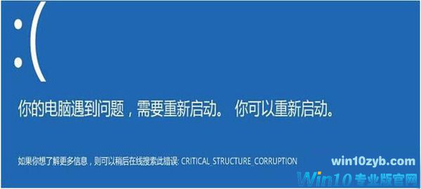 Win10蓝屏不带错误的代码及文件,提示CRITICAL_STRUCTURE_CORRUPTION的问题的排查解决方案:
