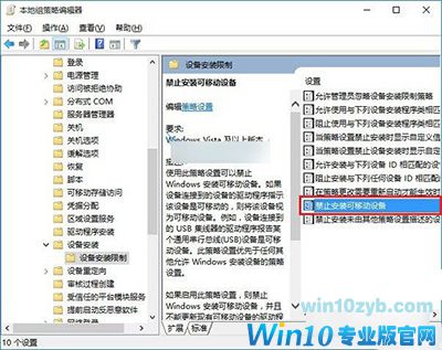 2:选中左边的本地组策略编辑器,选择计算机配置---管理模板--系统--设备安装--设备安装限止项,在双击设置里面的:禁止安装可移动设备这项,并且改成已配置即可