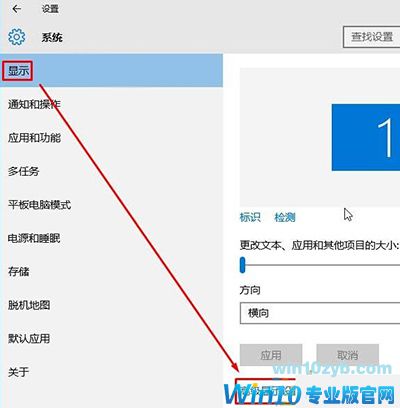 3、在“高级显示设置”界面将“分辨率”下拉菜单选择为带“推荐”字样的分辨率,然后点击应用;