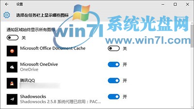 1、关闭“通知区域始终显示所有图标”;