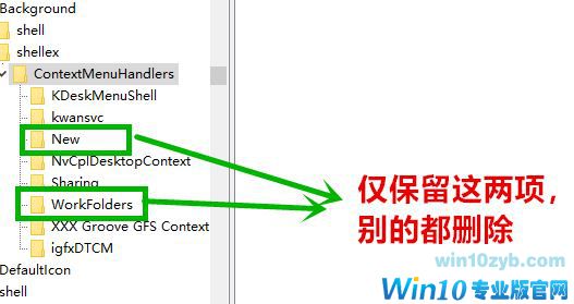 3、这里仅保留“new”和“workfolders”两项,其余的全部删除,如图所示: