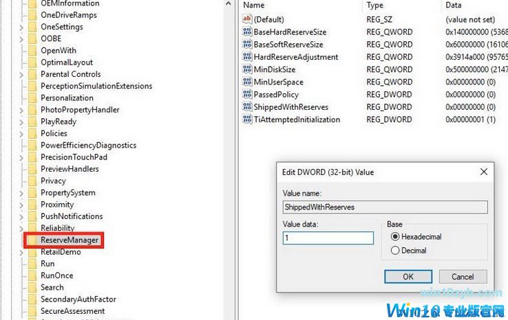 然后查找 ShippedWithReserves 后双击,将键值由1改为0,再点击下方的“确认”保存设置即可,如图所示。