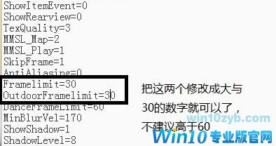 6、打开后,对 Framelimit 和 OutdoorFramelimit 两个值进行修改即可。