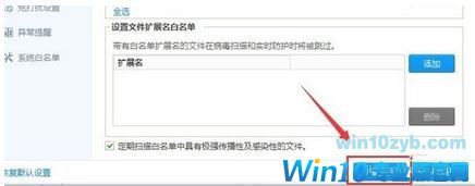 5、适当设置一下白名单,这样能够避免扫描,减少资源开销。完成设置之后,再点击确定就可以可保存设置。