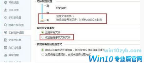 4、把监控级别设置到最低,监控文件的类型修改为监控程序和文档文件。