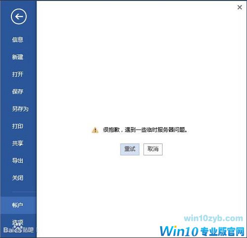 在win10系统中运行office的时候会弹出登录或激活的界面让我们进行账号登录或者选择,但是有用户却遇到了 无法登录office的现象,在登录界面没有显示账号密码输入框,而是弹出:很抱歉 遇到一些临时服务器问题 的提示,该怎么办呢?