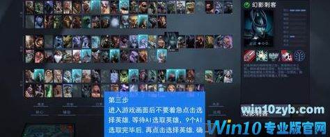 3、然后我们进入游戏画面后不要着急点击这择英雄,等待AI选取英雄,9个AI选取完毕后,再点击选择英雄,确定,进入游戏战场画面,如图: