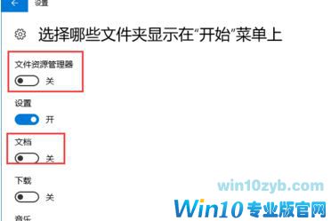 5、在打开的 选择哪些文件夹在开始菜单上 下方 将 设置 选项的开始打开即可显示,关闭的话则隐藏哦!