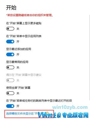 4、在【开始】选项卡界面单击【选择哪些文件夹显示在“开始”菜单上】选项,如图: