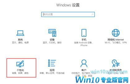 2、在弹出的【Windows设置】对话框中选中【个性化】选项,如图: