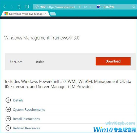 1、首先打开https://www.microsoft.com/en-us/download/details.aspx?id=34595 下载 Windows Management Framework 3.0,然后找到Windows6.1-KB2506143-x64.msu(64位系统下载这个,32位系统下载对应的x86的就可以);