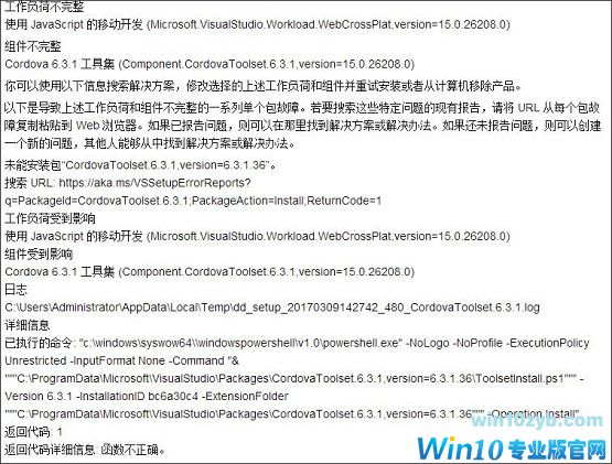 在win7操作系统中我们可以顺利的安装Visual Studio 2017,但是使用win10操作系统的用户却遇到了Visual Studio 2017无法正常安装的现象。小编在通过测试后确实发现了在win1010240版本上安装VS2017之后重启电脑会提示你出现“致命错误,开始菜单和小娜无法使用,请注销,会在以后的版本中进行修复”,若你在在10240版本上安装VS2017之,那只能通过重装系统解决。针对在win10系统中安装弹出下图所示提示: