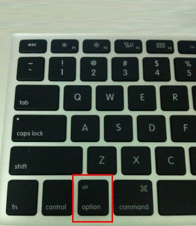 首先我们将已经用U启动软件制作好启动盘的U盘插入苹果笔记本电脑的USB接口处,然后开机,在笔记本开机/重启的时候我们连续按“option”键即可,如下图: