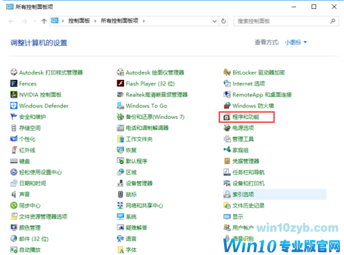 第三步:打开控制面板,选中”程序和功能“。