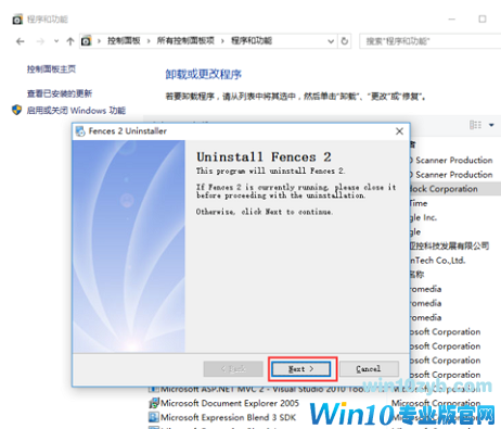 第四步:双击打开,找到要卸载的fences软件,双击卸载,在弹出框中选中下一步(Next),点击”yes“确认删除。然后确认删除历史数据。