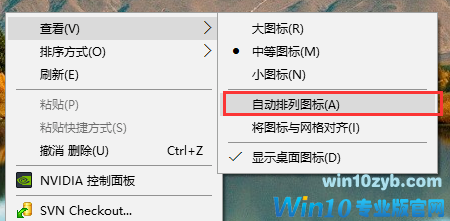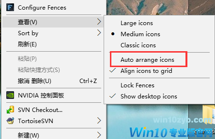第一步:在桌面上右击查看是不是设置了图片”自动排列(Auto arrange icons)“。