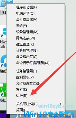 一、 右键点击“开始菜单”按钮,在弹出的菜单中选择“运行”菜单项。