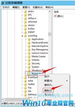4.找到HKEY_LOCAL_MACHINE\SYSTEM\CurrentControlSet\services\eventlog,确认是否存在Parameters项,如果存在,请右键点击该项并点击“导出”作为备份,如果删除该项后发生其他问题,可以双击该文件导入注册表作为备份。然后将eventlog下的Parameters文件夹右键删除。