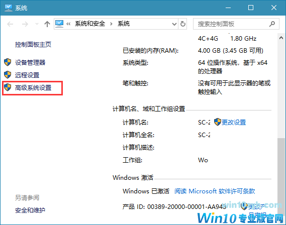 2、在弹出的系统属性页面,我们如图所示选择“高级系统设置”;
