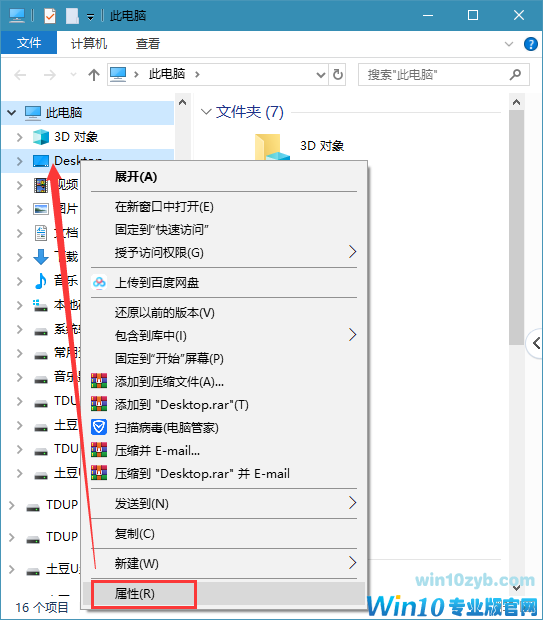 1、打开桌面上的“此电脑”,在左侧导航中,右击desktop,选择“属性”;