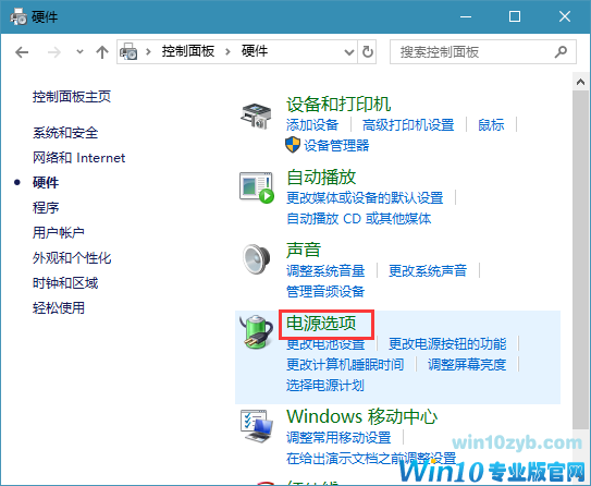 3、在硬件,这一大项目中,找到“电源选项”,单击进入;