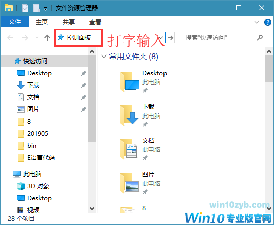 1、双击打开桌面的“此电脑”,并在地址栏处输入“控制面板”四个字,就可以顺利进入控制面板!