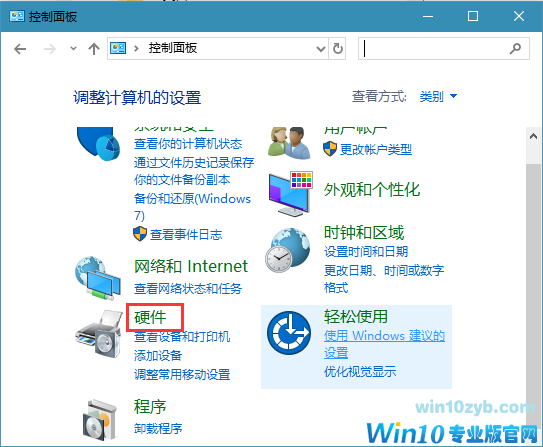 2、在控制面板中,找到“硬件”这一项目,单击进入;