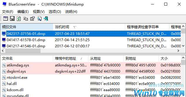2、运行后自动扫描您的当前小存储器转储文件文件夹并列出显示所有崩溃转储文件,包括崩溃转储日期、时间和崩溃细节。