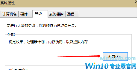 3.在弹出的界面中点击“高级”,在性能的右下边,选择“设置”打开。