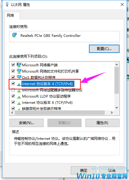 找到Internet协议版本4,点击进去。