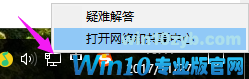在电脑右下方联网的那个符号右键点击,就会出现疑难解答和打开网络共享中心,选下面那个打开网络共享中心