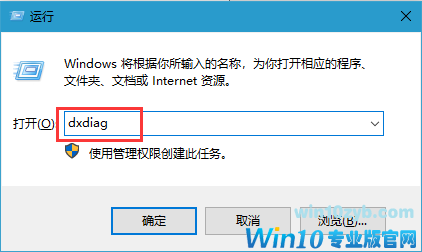 3、在桌面环境下,按下win+R调出运行窗口,并输入"dxdiag"命令,并确定执行;
