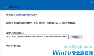 2、在该文件夹中新建一个快捷方式,在对象位置中输入以下内容,点击“下一步”继续: