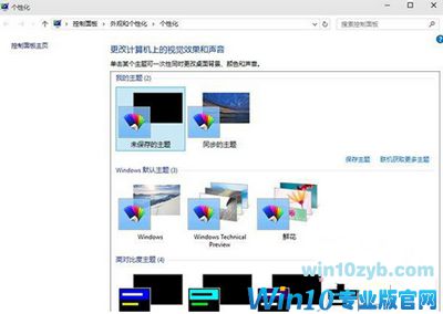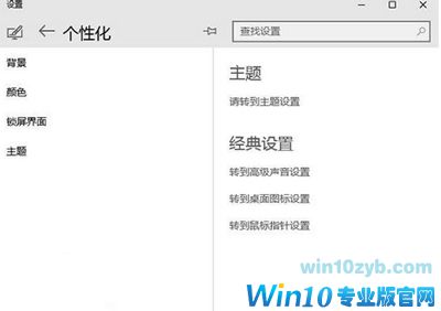 2、另外,原来的个性化窗口虽然可以进入,不过里面的设置功能只剩下主题可以选择,其他的选项比如说声音、背景、鼠标指针、屏幕保护、桌面图标等功能都背移除。