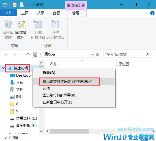 以上就是win10系统如何将回收站固定到桌面快速访问的方法,希望对大家有所帮助。